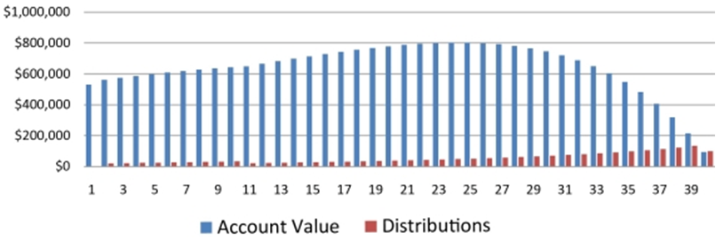 - The projected figures assume that Mary takes the smallest distribution she's allowed to take under IRS rules at the latest possible time without penalty.